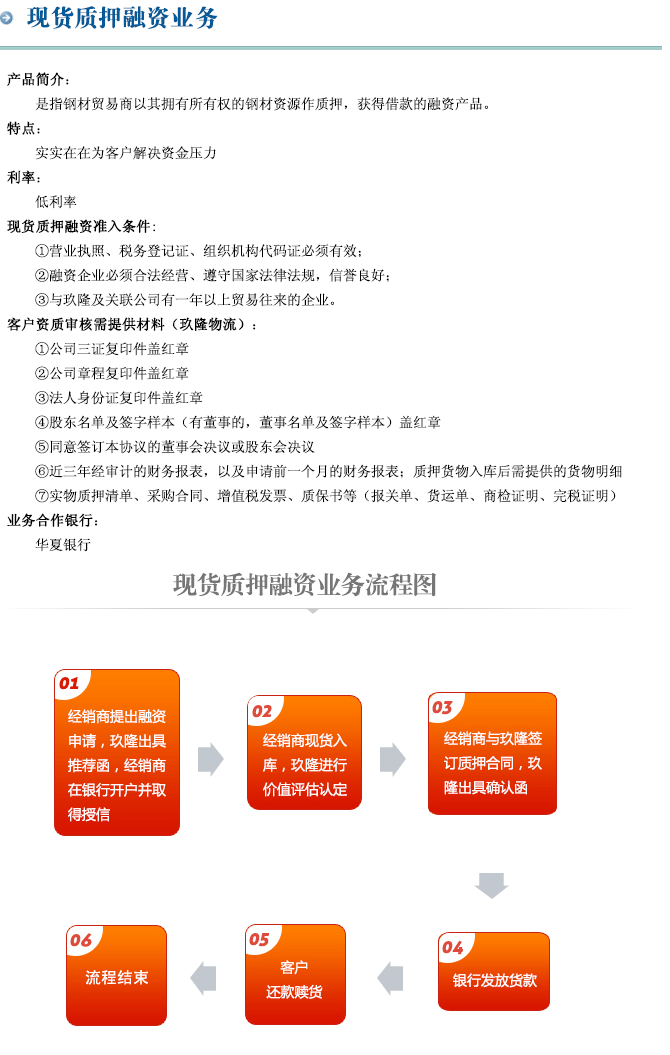 是基于賣方的融資業務,為緩解賣方貨物庫存占壓資金,提供在庫貨物質押融資服務。