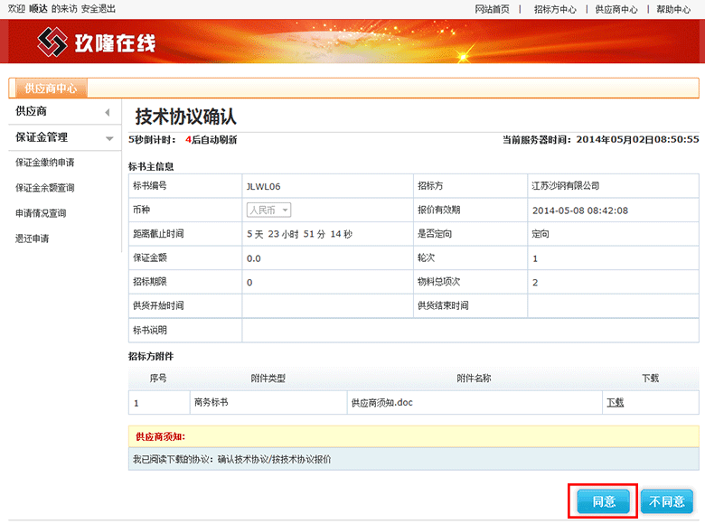 進入“供應商中心—標書查詢—我要報價”確認協議后出價。
